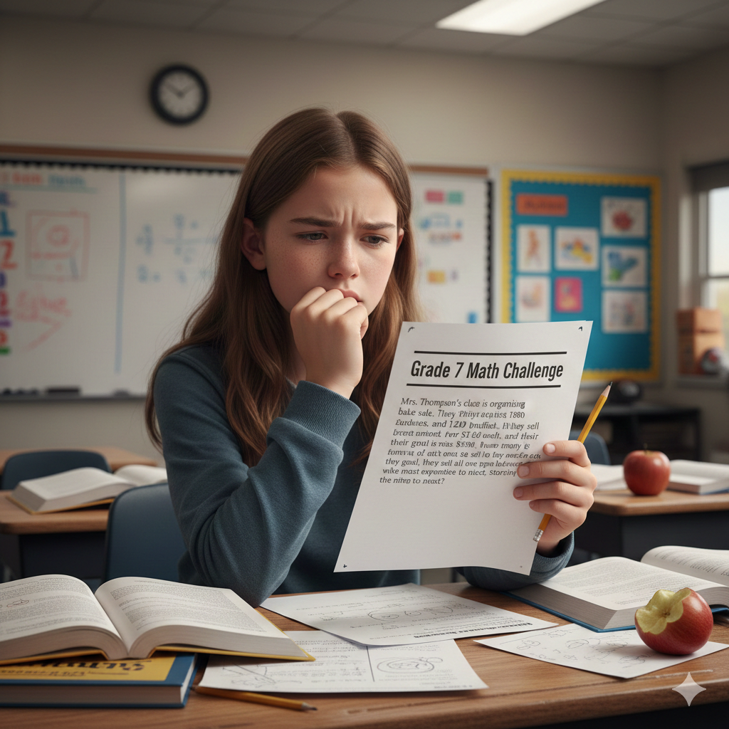 - **Alt Tag:** “Grade 7 student looking anxious while reading a math word problem”